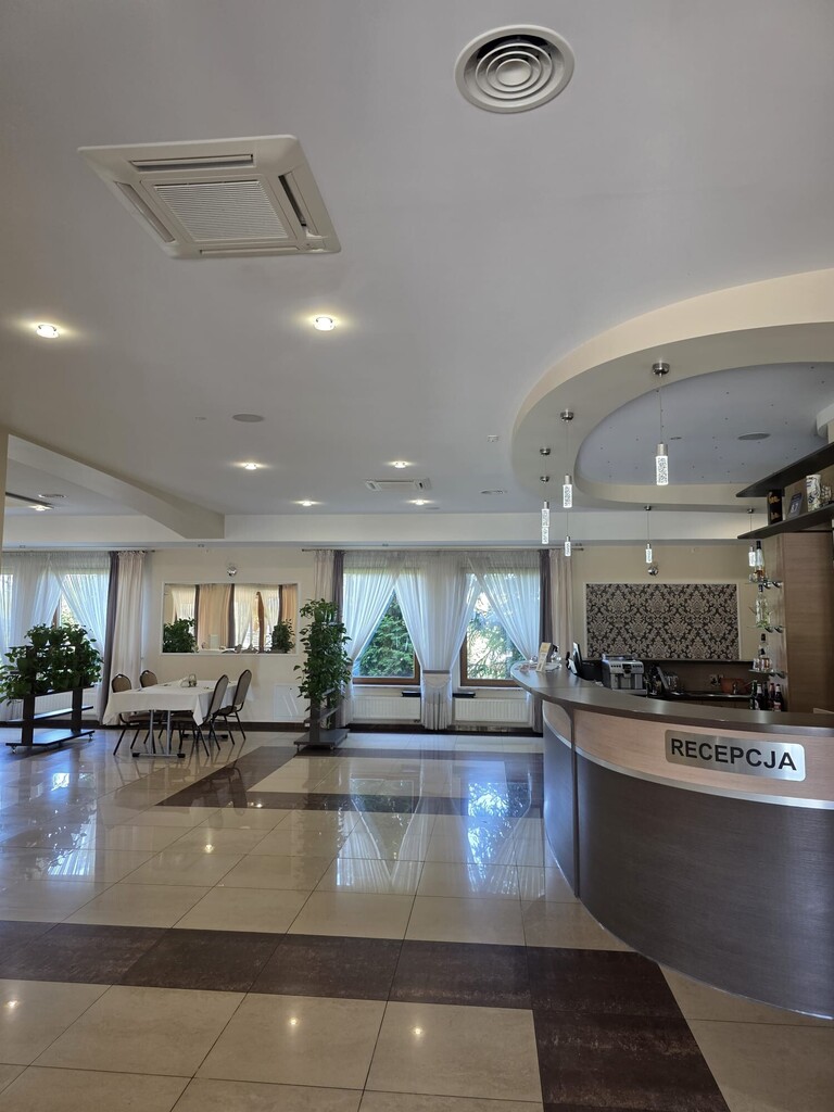 Dwa tarasy zewnętrzne Wyposażenie i udogodnienia: Klimatyzacja w sali bankietowej, konferencyjnej i biurze Podnośnik/winda dla osób niepełnosprawnych Profesjonalne zaplecze gastronomiczne Obiekt monitorowany i utrzymany w bardzo dobrym stanie technicznym Atuty inwestycyjne: Gotowy, działający obiekt z rozpoznawalną marką Doskonała lokalizacja przy ruchliwej trasie krajowej Funkcjonalny układ – idealny pod działalność hotelarsko-gastronomiczną Możliwość dalszego rozwoju działalności (np. SPA, organizacja eventów całorocznych).