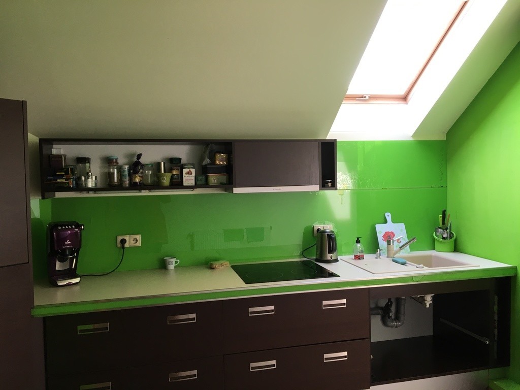 Lokal składa się z jednego pomieszczenia z oknami dachowymi. Na korytarzu jest łazienka i pomieszczenie socjalne do użytkowania dla wszystkich najemców sąsiednich lokali.