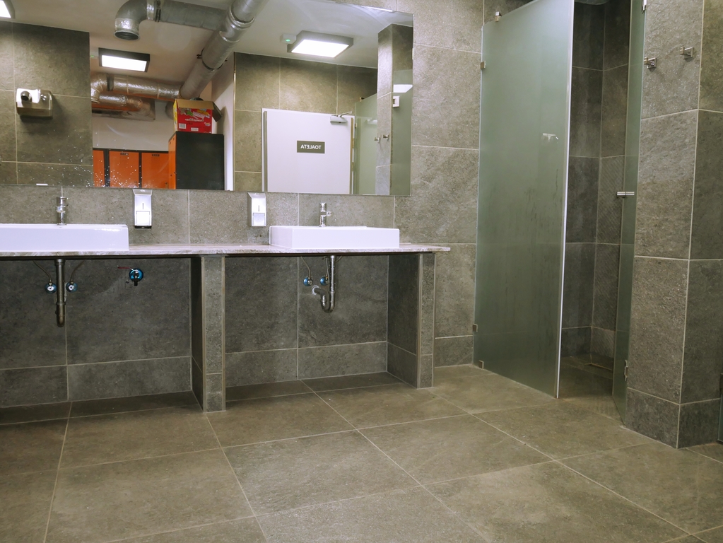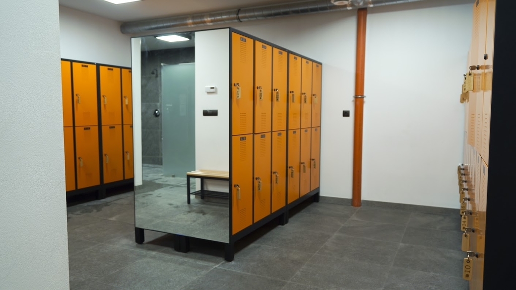- dwie szatnie o powierzchniach 80m2 i 40 m2 (damska i męska), każda z indywidualnymi szafkami, natryskami i toaletami;