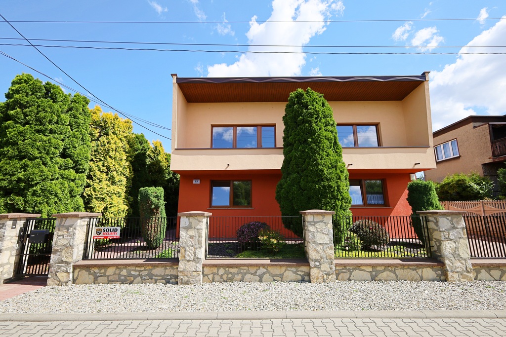 Dom posiada zewnętrzny monitoring oraz jest zabezpieczony przez firmę Solid.