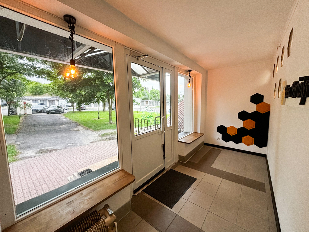 - Przestronny korytarz łączący wszystkie strefy lokalu.