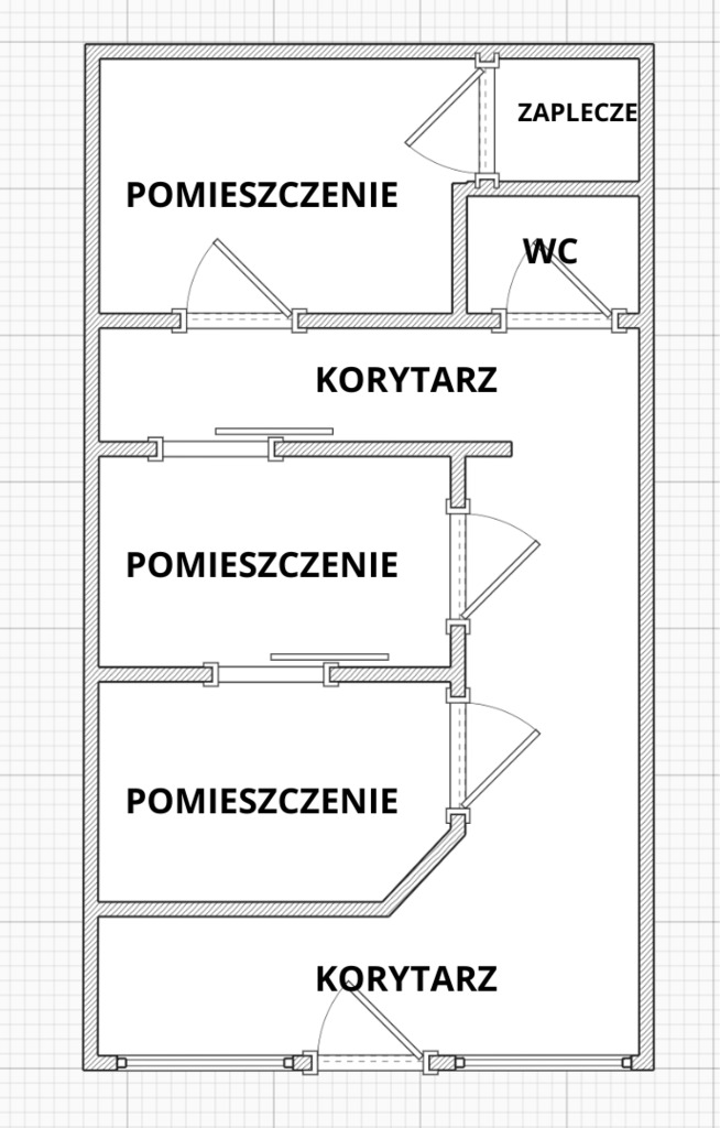 - 3 oddzielnych, przestronnych pomieszczeń – każde z osobnym wejściem z korytarza,