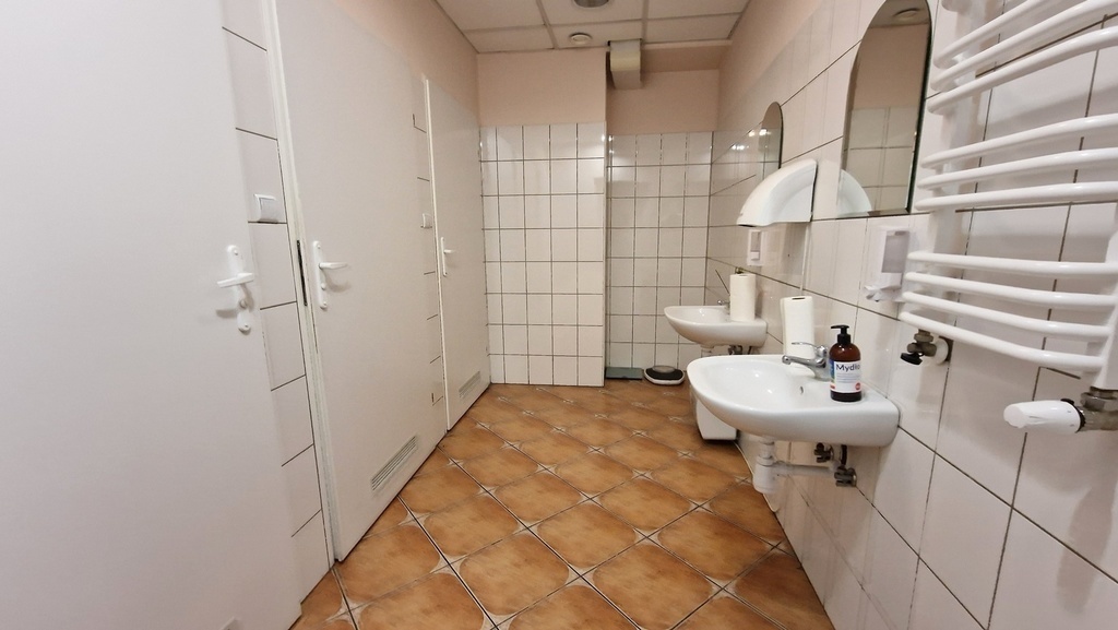 Sale sprzedażowe, biura, łazienki, zaplecza gospodarcze, szatnie, kuchnia pracownicza, komunikacja