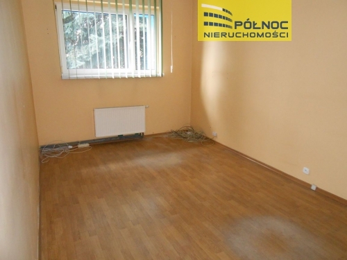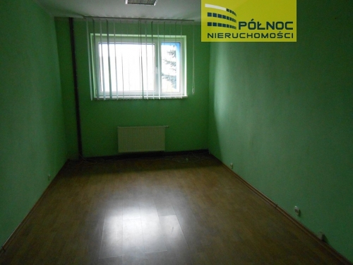 Lokal biruowy o powierzchni 32 m2, składający się z dwóch pokoi, położony na parterze dwupiętrowego budynku biurowego. Lokal w dobrym stanie technicznym. Na ścianach gładzie, na podłodze panele. Na korytarzu znajdują się sanitariaty oraz jadalnia. Ogrzewanie z kotłowni olejowej.