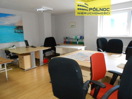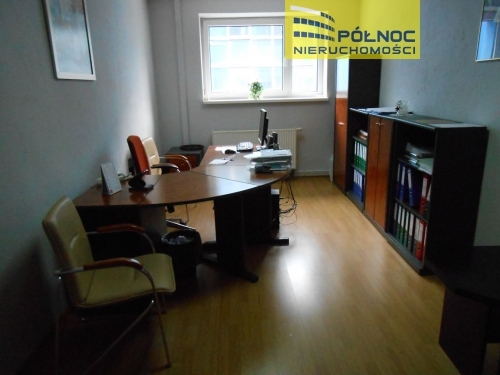 Lokal biruowy o powierzchni 48 m2, składający się z dwóch pokoi, położony na parterze dwupiętrowego budynku biurowego. Lokal w dobrym stanie technicznym. Na ścianach gładzie, na podłodze panele. Na korytarzu znajdują się sanitariaty oraz jadalnia. Ogrzewanie z kotłowni olejowej.