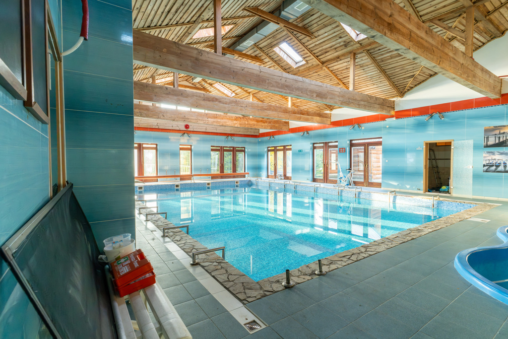 • basen kryty o wymiarach 12 × 8 m i głębokości 1,4–1,6 m