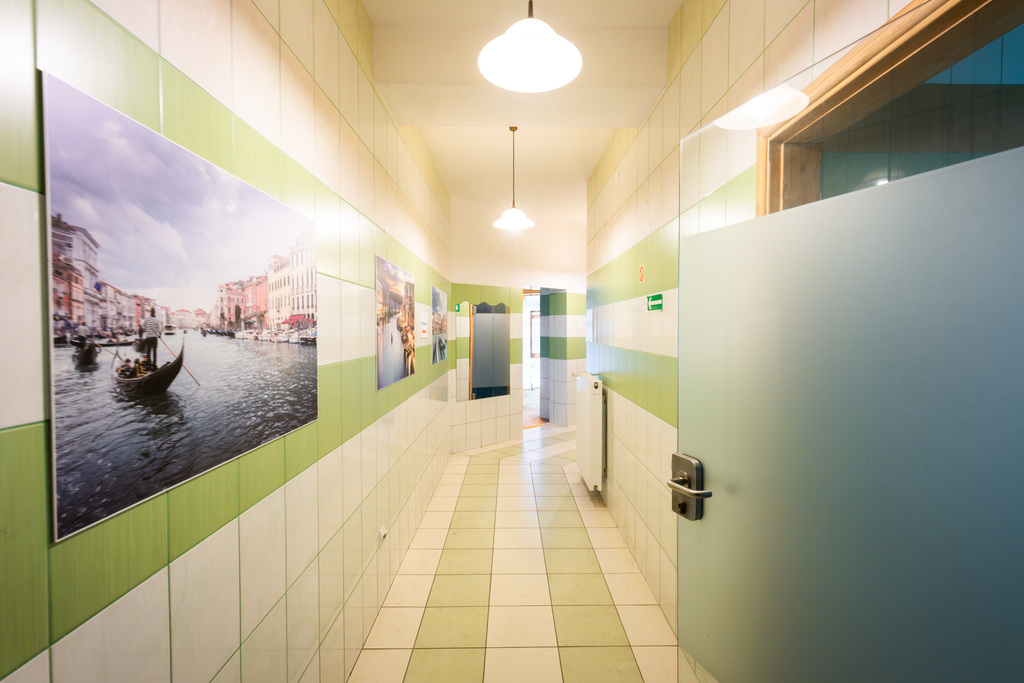 • korytarze, windy, pochylnie, pomieszczenia socjalne