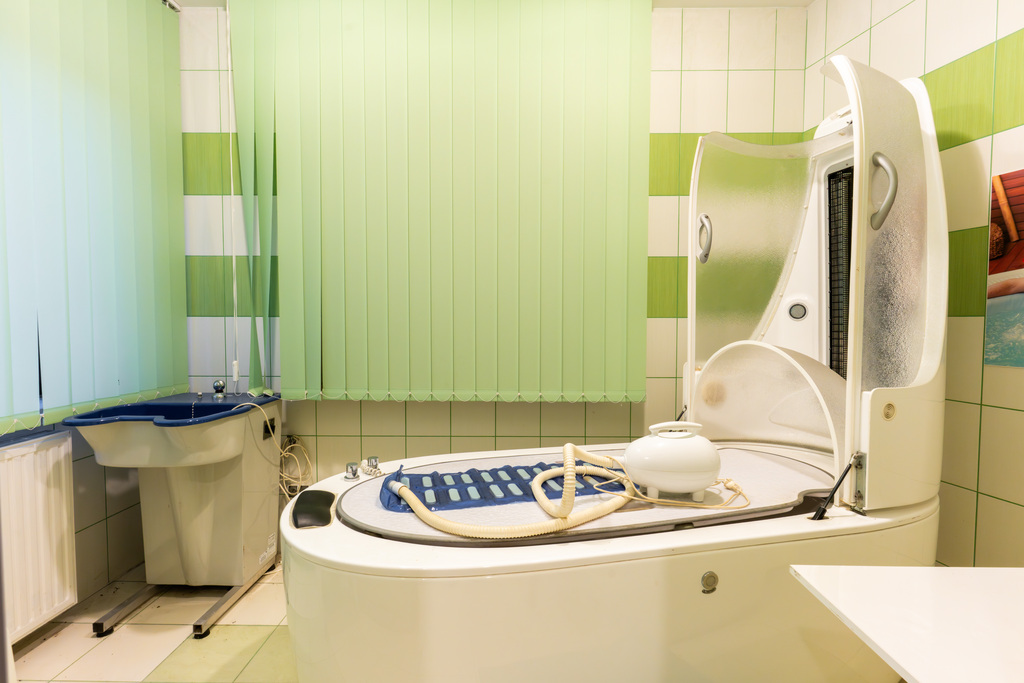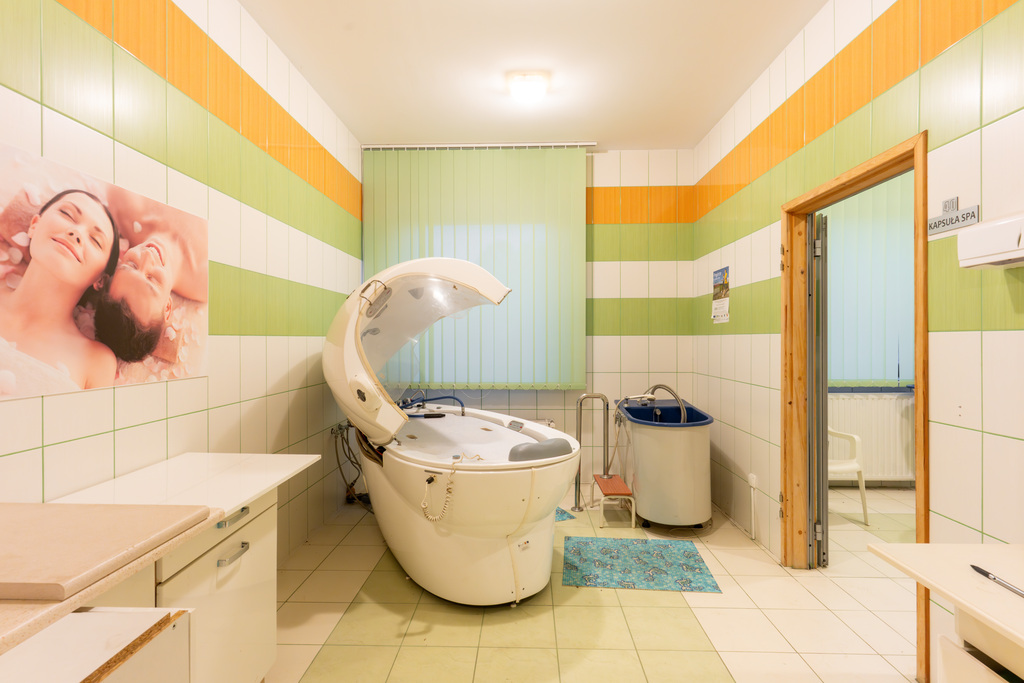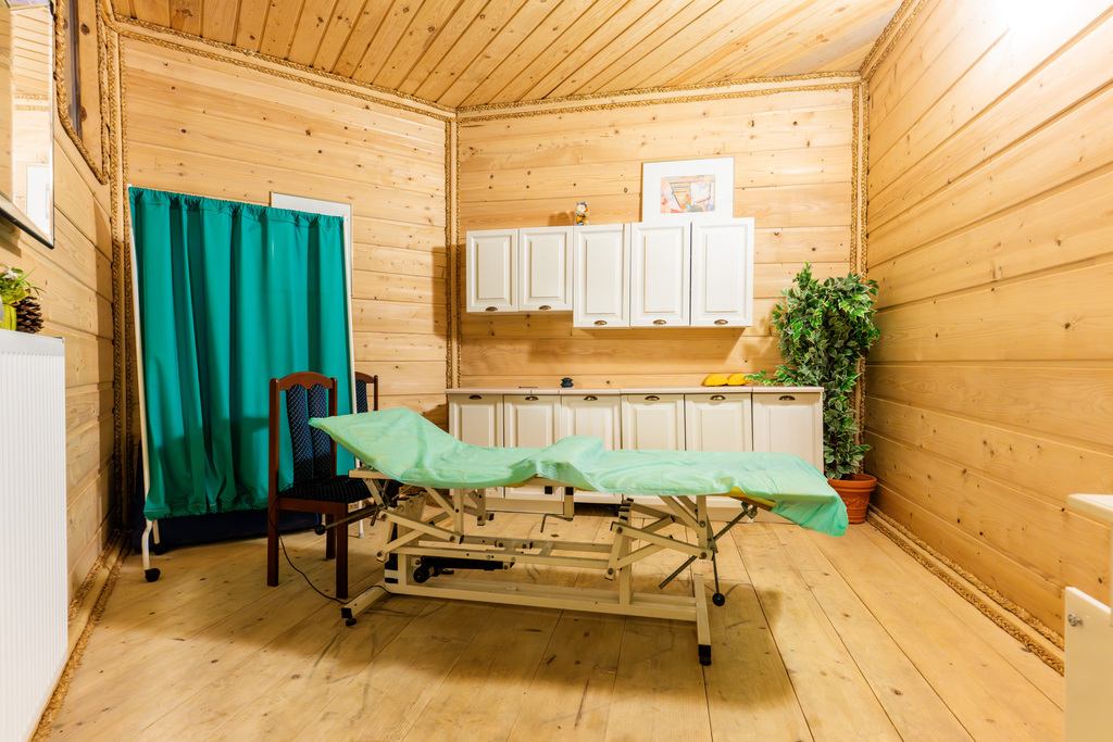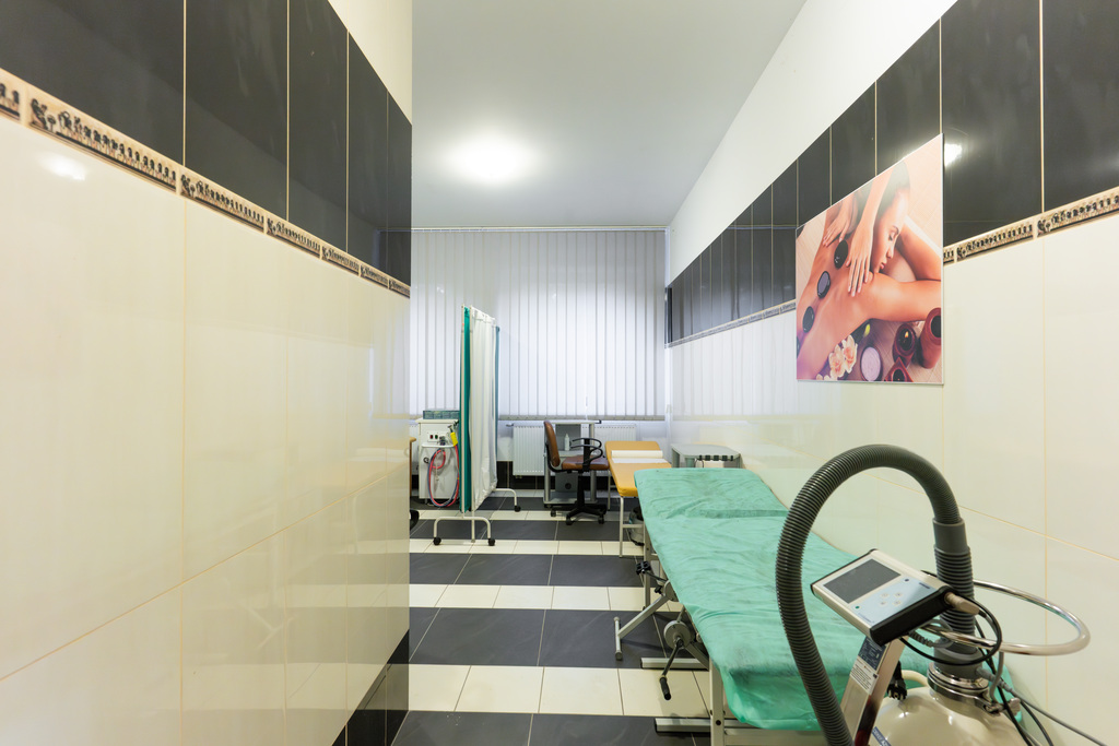• strefa zabiegowa – 3 gabinety wyposażone w urządzenia do hydroterapii, inhalacji, wirówki, UGUL, aquavibron, laser, lampy sollux