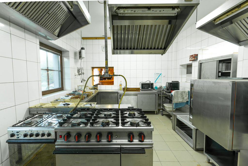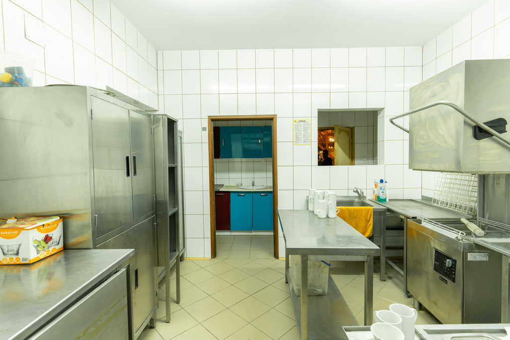 • w pełni wyposażona kuchnia profesjonalna (trzony gazowe, konwekcyjno-parowe piece, chłodnie, zmywalnie, magazyny żywności, zaplecze sanitarne)