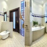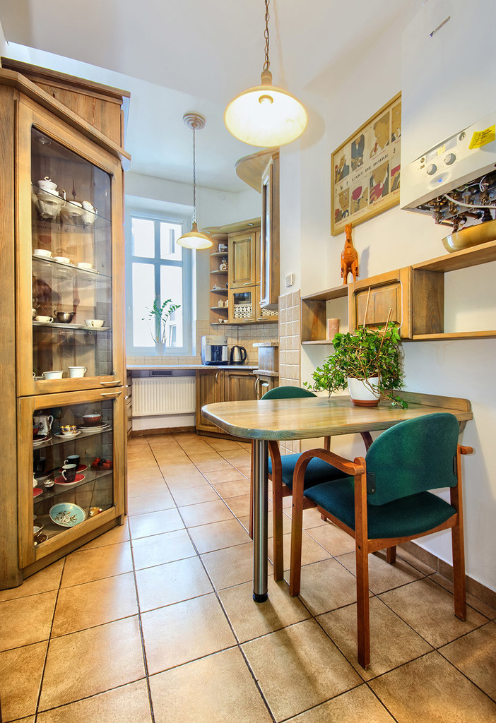 W pomieszczeniu socjalnym (kuchni) oraz w łazience znajdują się płytki podłogowe.