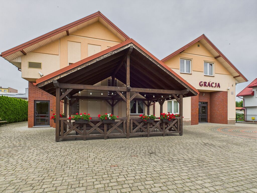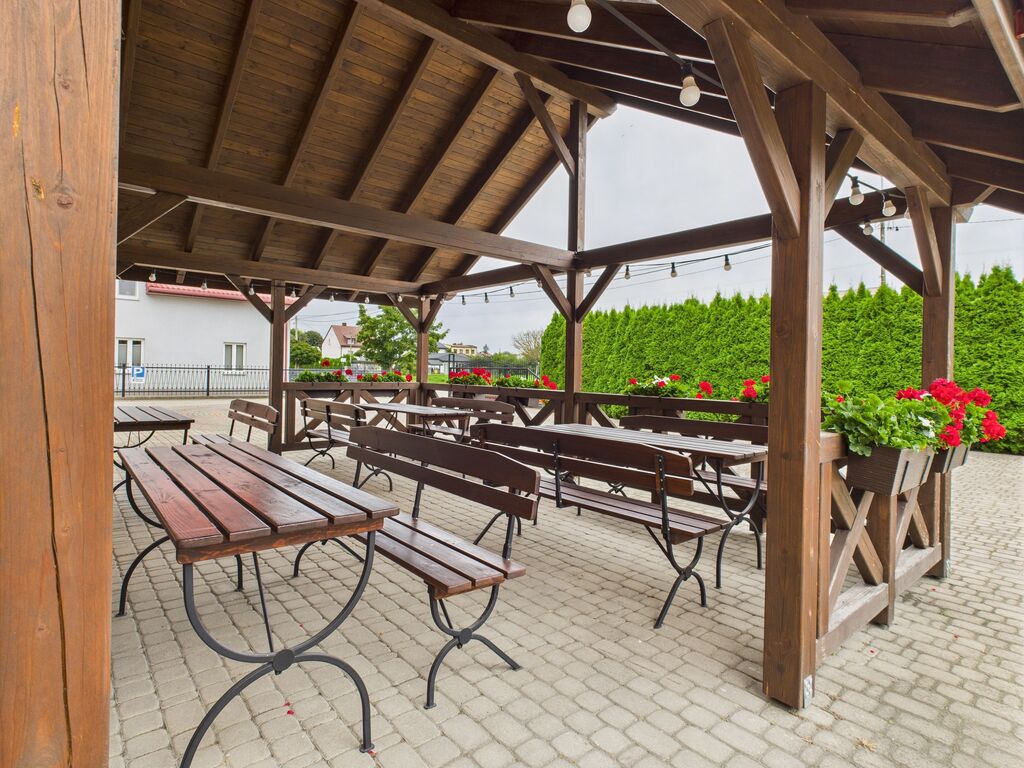Sala bankietowa przystosowana do organizacji wesel oraz rożnych imprez okolicznościowych: konferencji, chrzcin, bankietów, komunii, bali sylwestrowych, studniówek, innych imprez rodzinnych. W obiekcie na piętrzę 16 pokoi noclegowych z łazienkami. Posiadłość uzupełnia zagospodarowana działka z zadaszonym tarasem, fontanną, strefą do wypoczynku z ławeczkami otoczonymi zielenią.