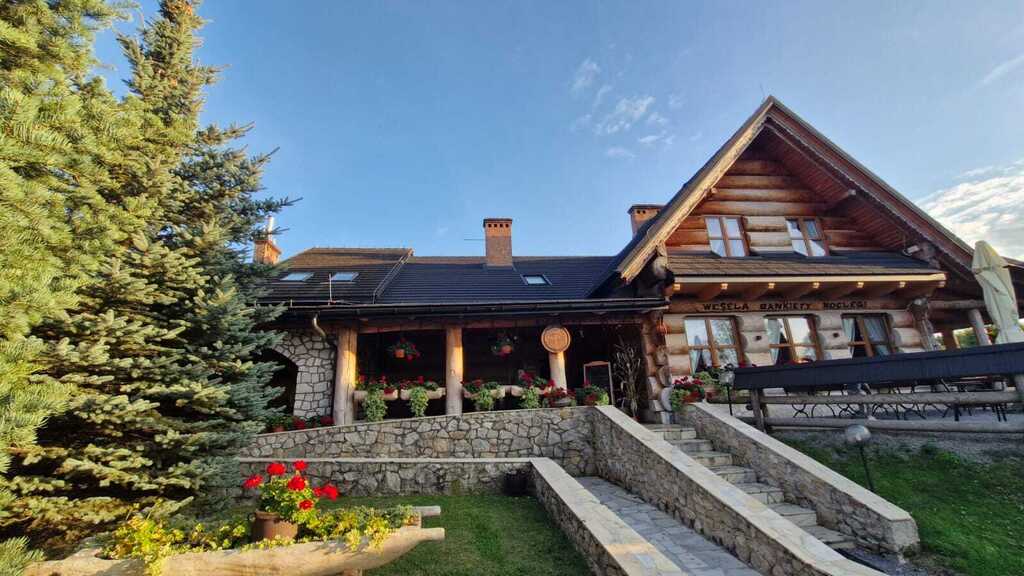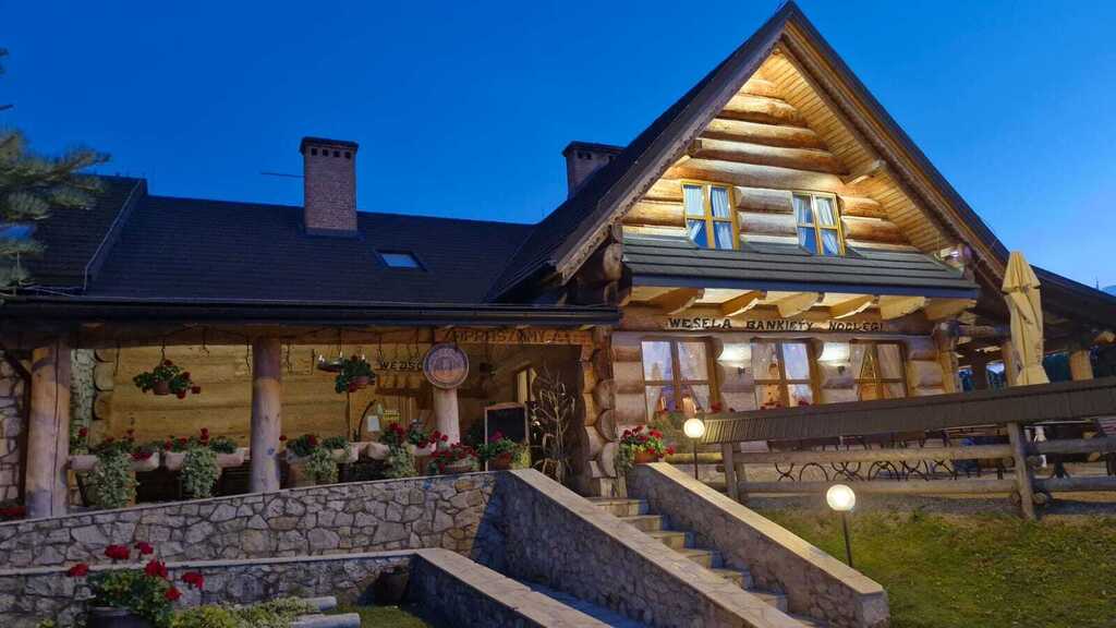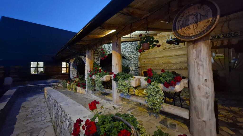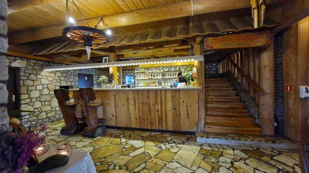 • Kompleks restauracyjny zbudowany z bali jodłowych – kilka sal restauracyjnych na ponad 500 osób, utrzymanych w stylu ludowo-góralskim.