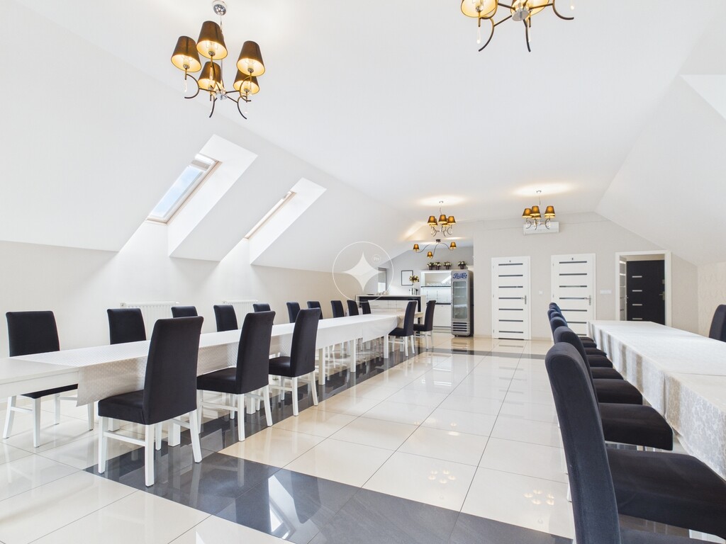 Budynek został zaprojektowany z myślą o organizacji różnego rodzaju wydarzeń - wesel, przyjęć okolicznościowych, bankietów czy spotkań firmowych. Funkcjonalny układ pomieszczeń oraz zaplecze techniczne umożliwiają sprawne prowadzenie działalności i obsługę gości na wysokim poziomie.