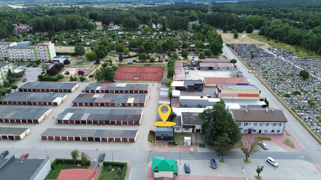 Na sprzedaż nowoczesny lokal handlowo-usługowy o powierzchni 46 m², położony na ogrodzonej działce 120 m² w Połańcu, przy ul. Bartosza Głowackiego 2E.