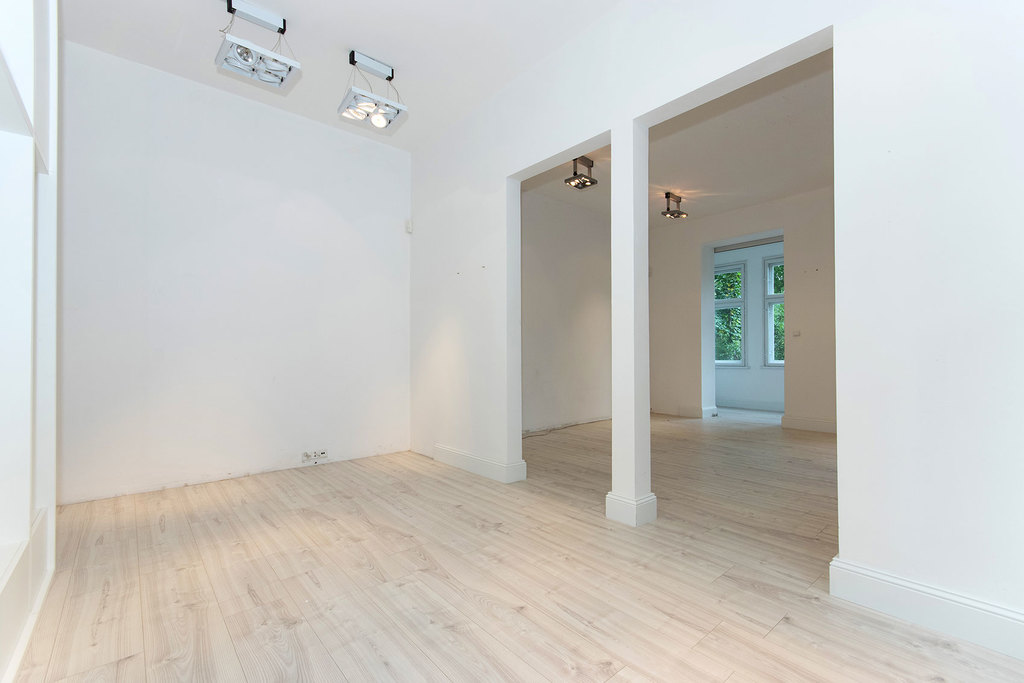 Lokal składa się z dwóch dużych pomieszczeń o powierzchni 22,84 m2 oraz 19,94 m2, kuchni (pom. socjalnego) o pow. 5,85 m2, toalety 3,91 m2 oraz holu wejściowego o powierzchni 4,47 m2.