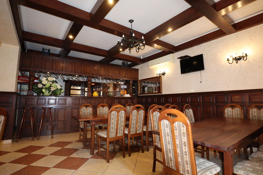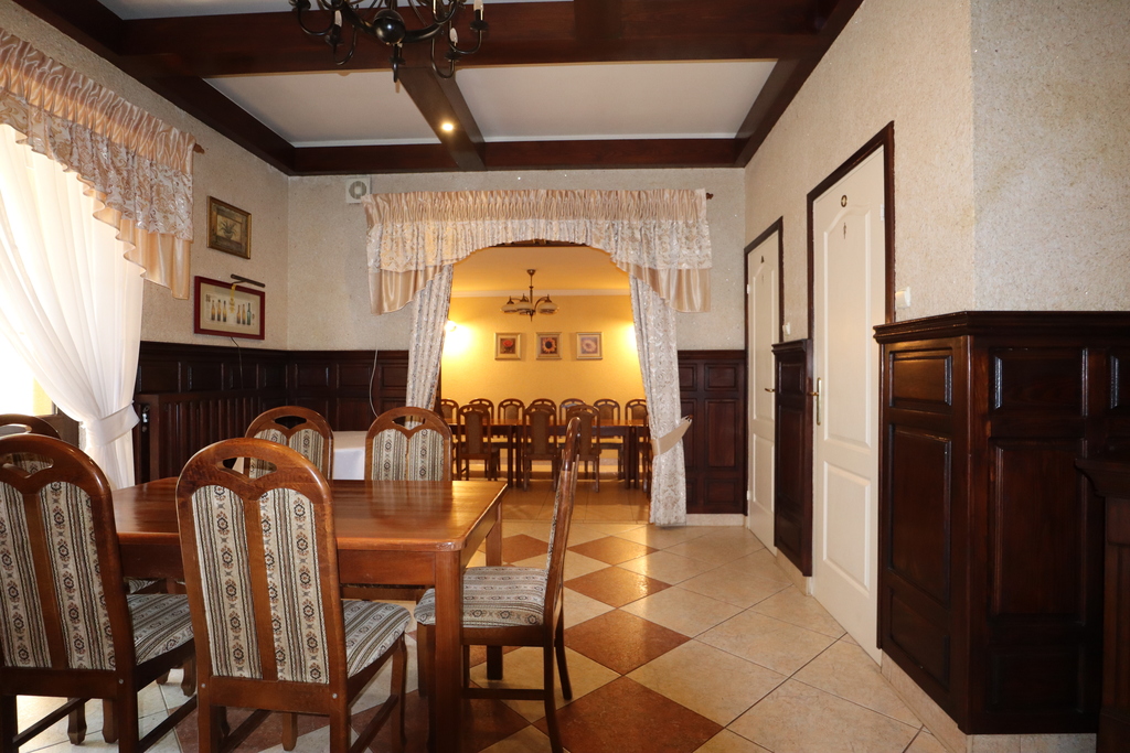 Nieruchomość zabudowana budynkiem głównym, w którym na parterze mieści się restauracja i sala bankietowa oraz bardzo duże zaplecze kuchenne, na piętrze są 3 pokoje dla gości i apartament z łazienką. W dalszej części działki znajduje się duża sala weselna. Wszystko na działce 54 ar.