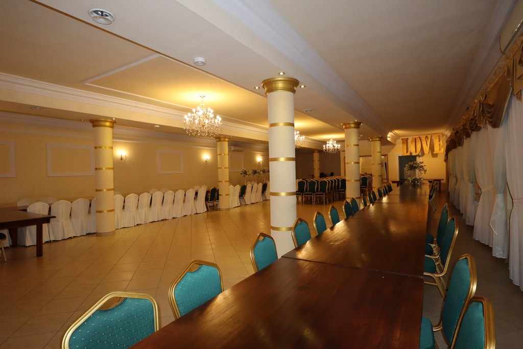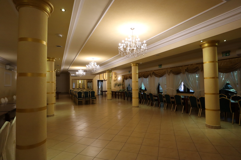 - Dodatkowo sala weselna pozwalająca na organizację imprez na około 150 osób.