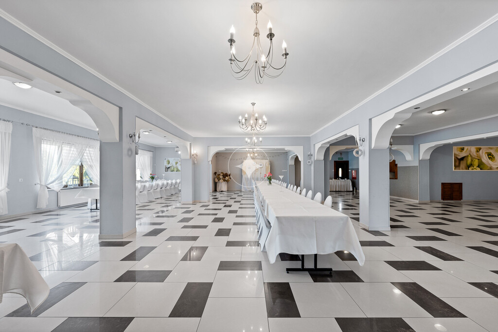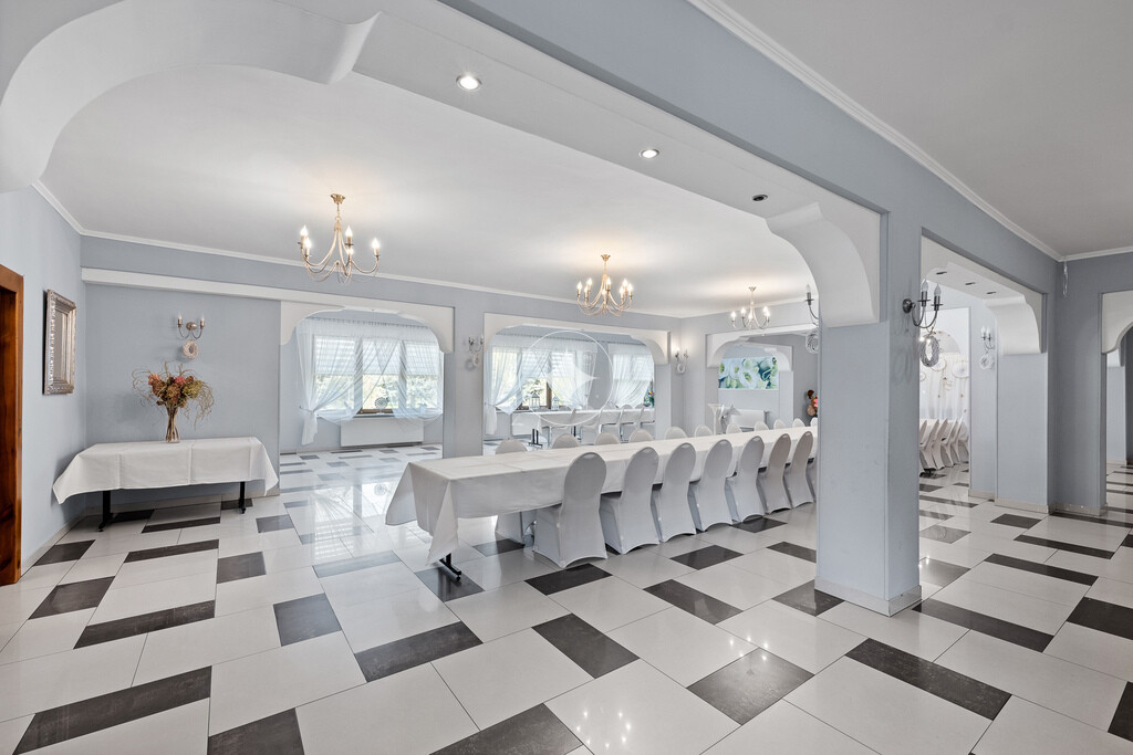restauracja i dom weselny. Budynek o solidnej konstrukcji i powierzchni 400 m2, usytuowany na dwóch działkach o łącznym statusie mieszkalno-usługowym (U/MN), co gwarantuje pełną elastyczność w doborze przyszłej funkcji.