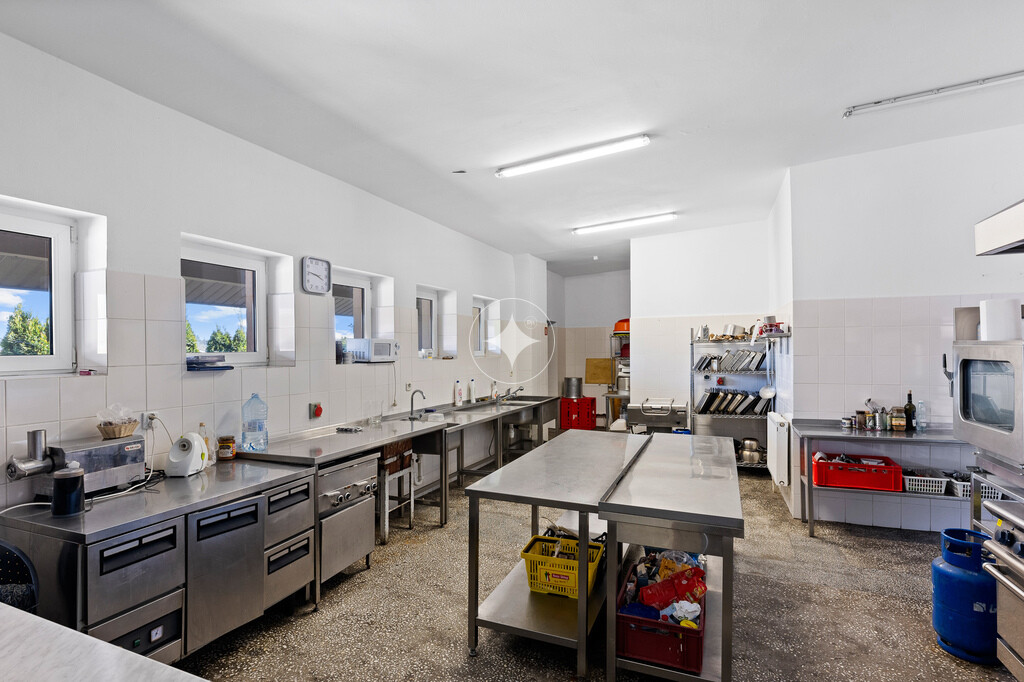 Parter (Serce Biznesu): Przestronna, klimatyzowana sala bankietowa idealna na przyjęcia okolicznościowe i eventy. W pełni wyposażone zaplecze kuchenne spełniające normy sanitarne, liczne pomieszczenia gospodarcze oraz profesjonalne komory chłodnicze (lodówki).