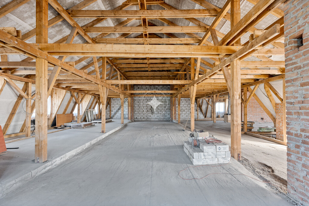 Piętro (Potencjał Adaptacyjny): Przestrzeń zaplanowana pod pokoje gościnne. Obecnie w stanie do wykończenia i własnej aranżacji – pozwala to na dostosowanie liczby i standardu pokoi do konkretnego pomysłu biznesowego (np. apartamenty, biura, sale rehabilitacyjne).