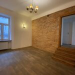 Mieszkanie po generalnym remoncie, zlokalizowane na dwóch poziomach (różnica kilku schodów między salonem a resztą pomieszczeń). Wysokie sufity (ponad 3 m) nadają wnętrzu przestronności.