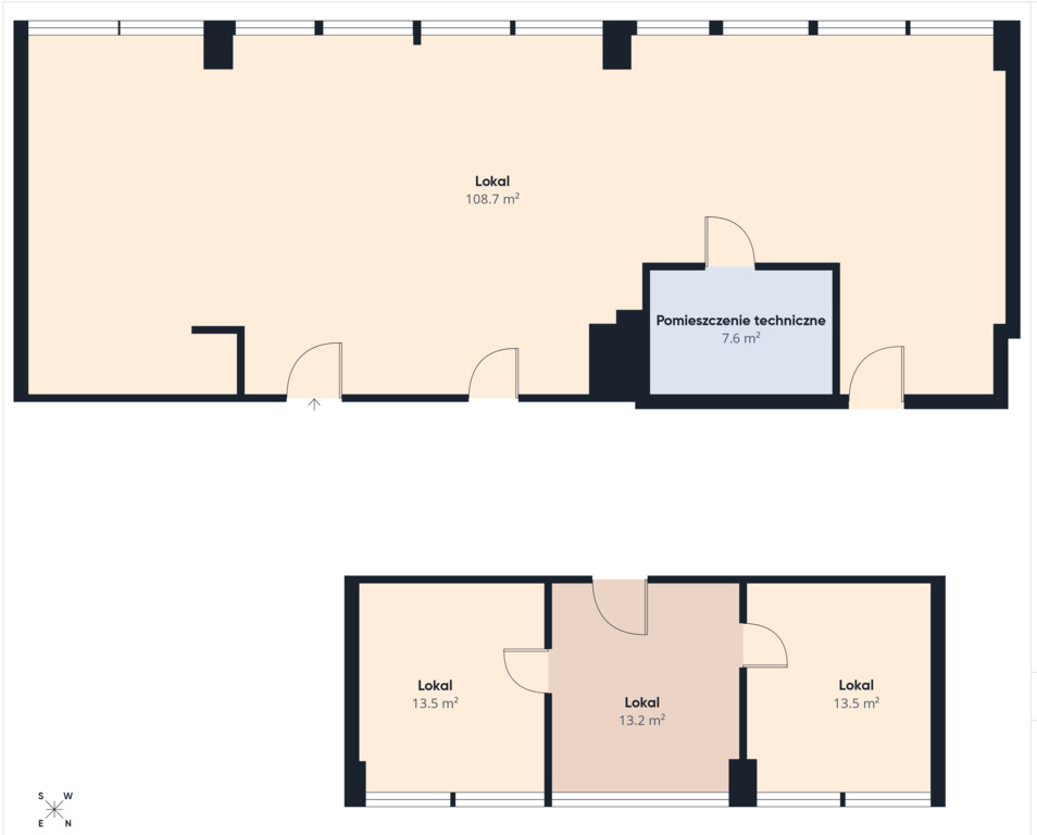 - 45,00 m² – Przestronny lokal o dużym potencjale aranżacyjnym.