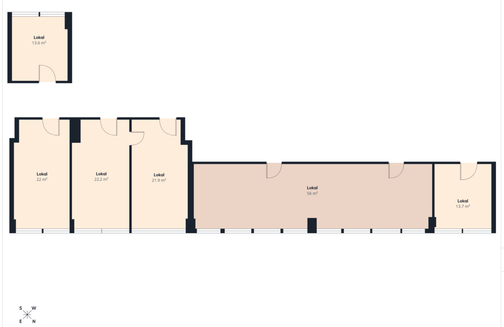 - 13,60 m² – Idealne jako gabinet lub biuro dla 1-2 osób.
