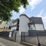 Wjazd na teren posesji oraz wejście główne do budynku zorganizowane są od strony ulicy Wiertniczej, dodatkowy wjazd jak i wejście do budynku znajdują się od strony ul. Łowczej i po północnej stronie budynku.