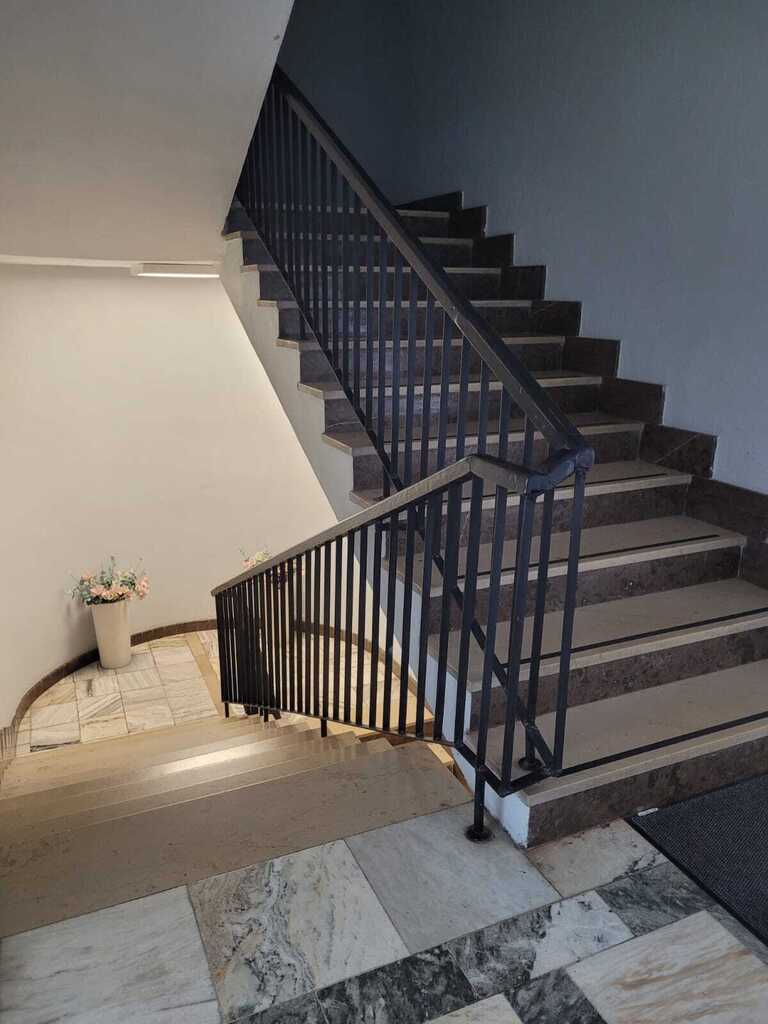-podłogi pokryte nowoczesnymi wykładzinami syntetycznymi lub dywanowymi, w niektórych pomieszczeniach terakoty, schody wykończone marmurem
