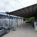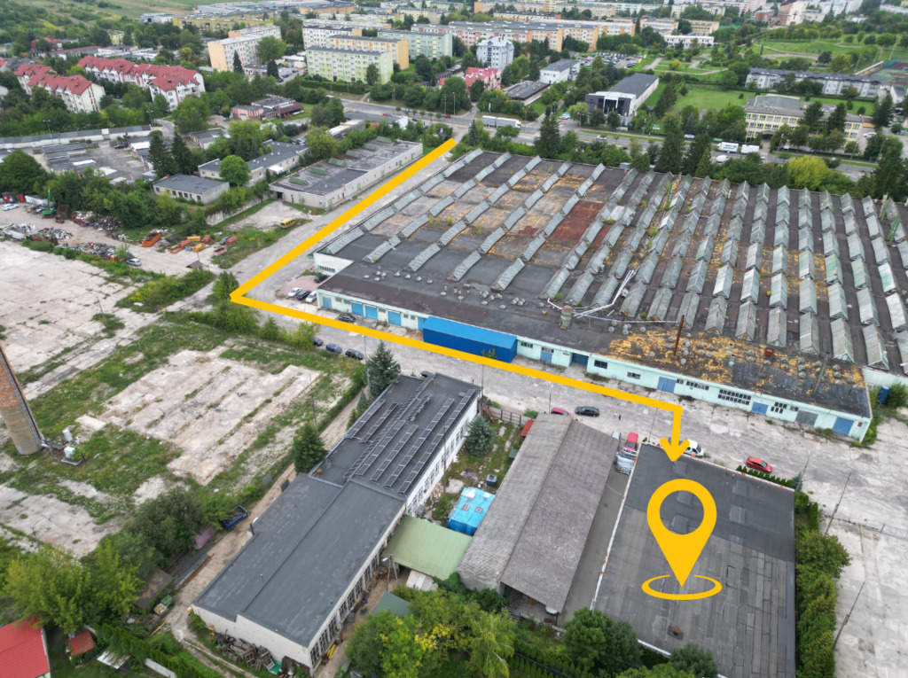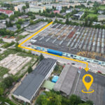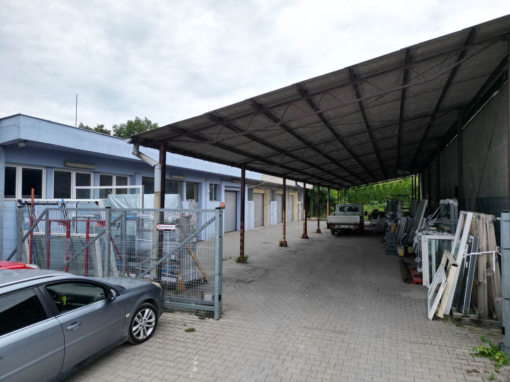 Przed magazynem znajduje się przestronny, utwardzony plac, który jest zadaszony, co umożliwia komfortowy załadunek i rozładunek towarów niezależnie od warunków atmosferycznych.