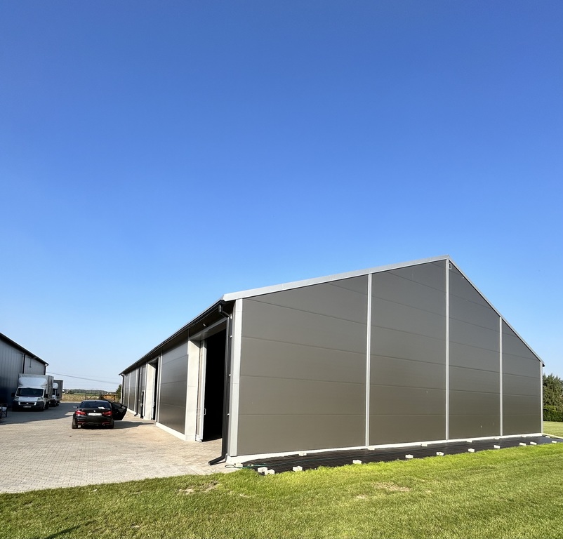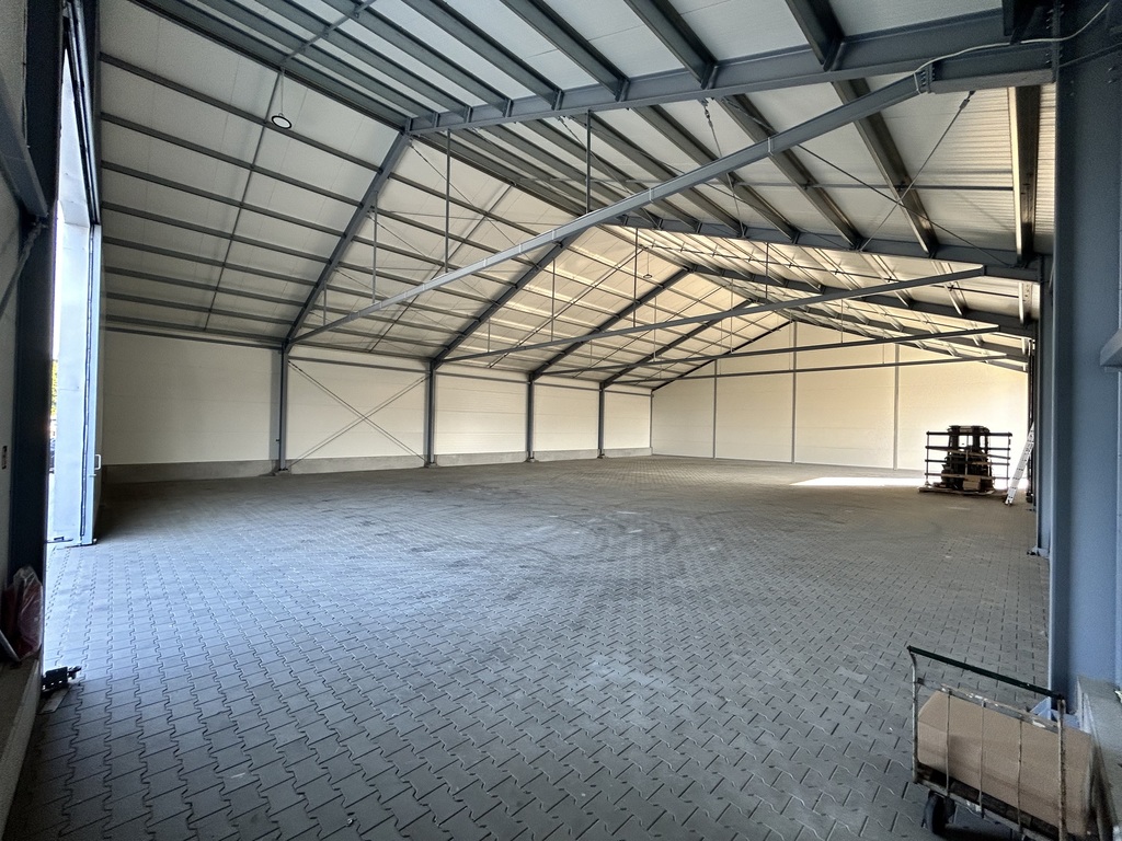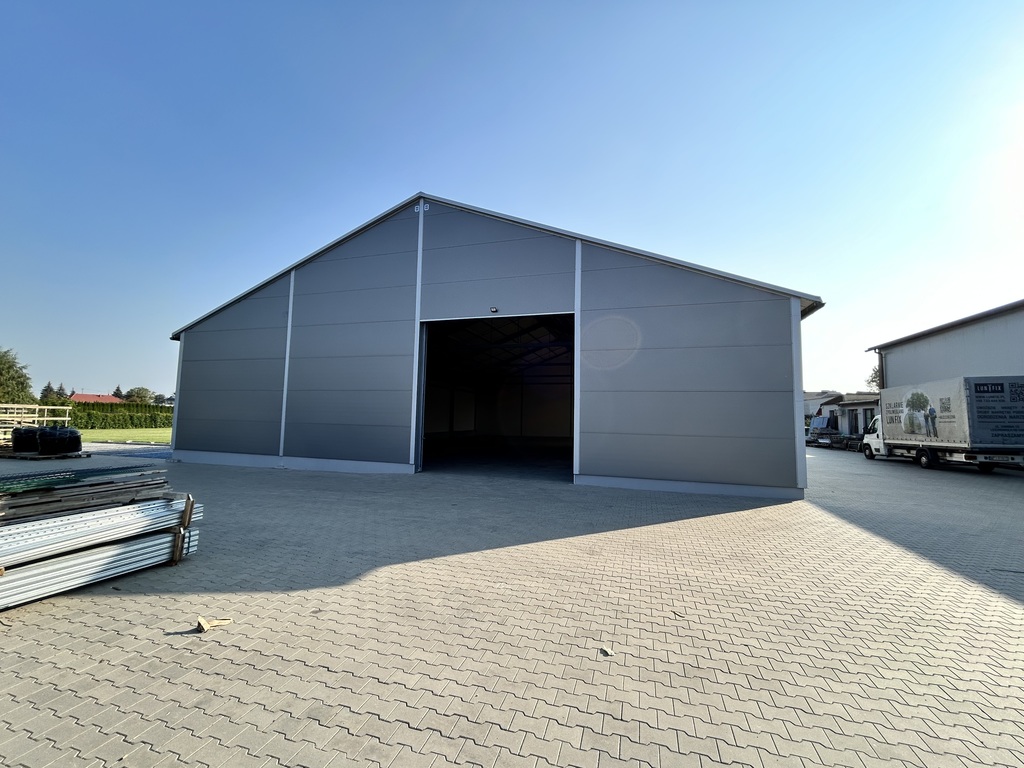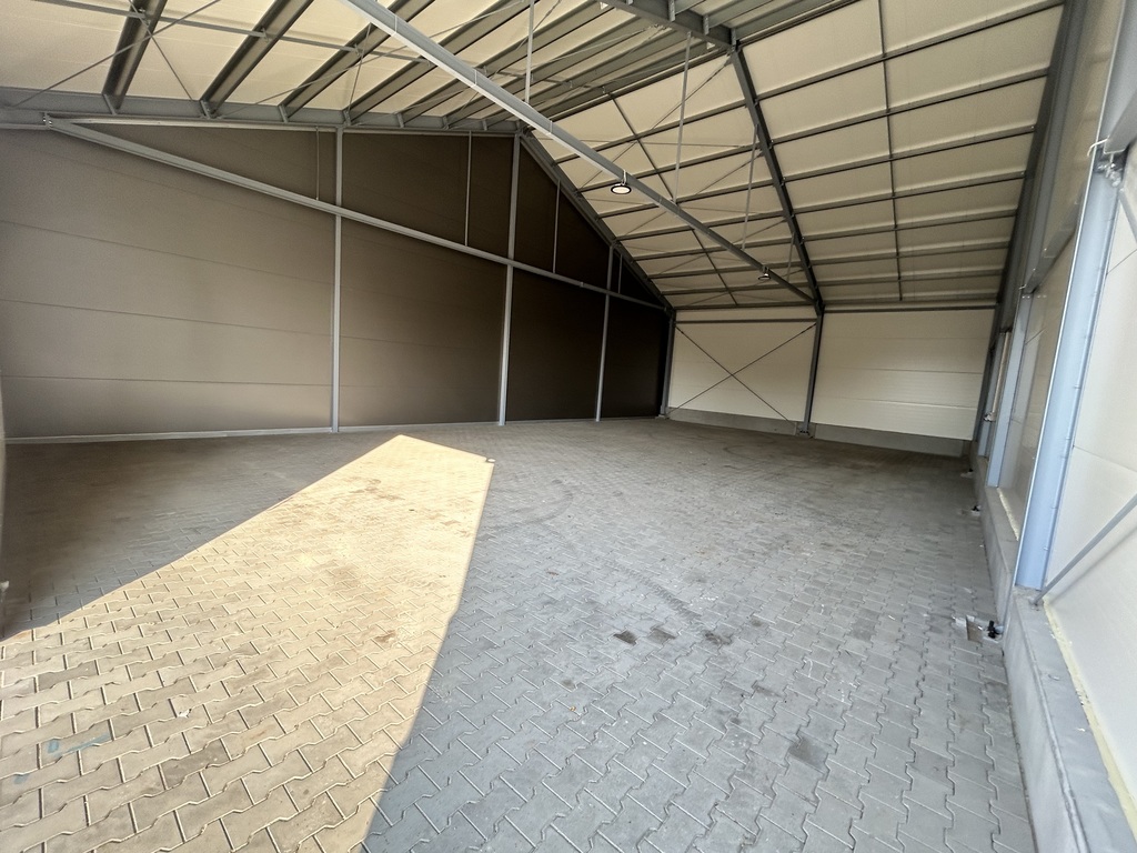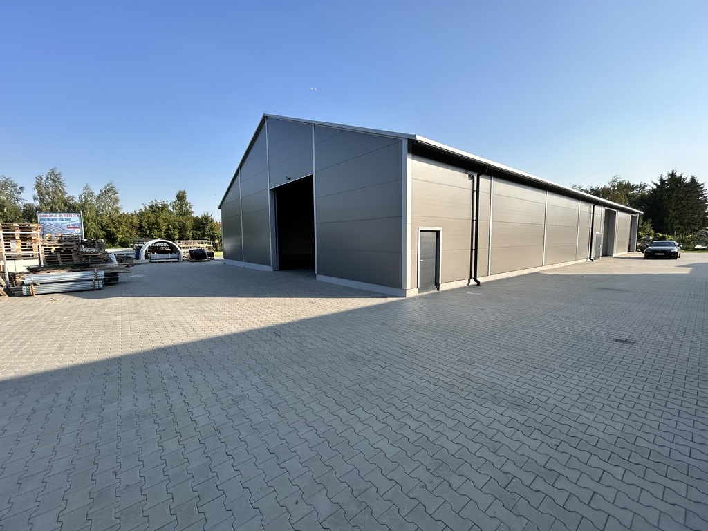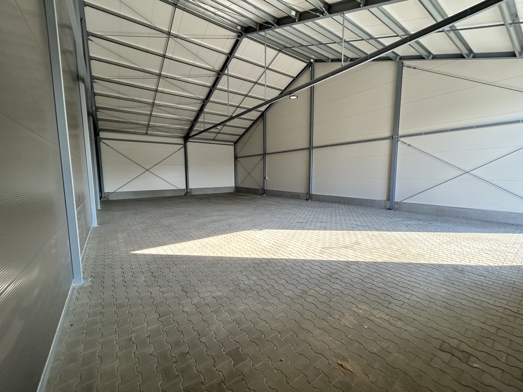 Hala  z wysokością magazynowania do 470 cm - wybudowana w 2024 roku z utwardzonym i wyłożonym kostka podjazdem.