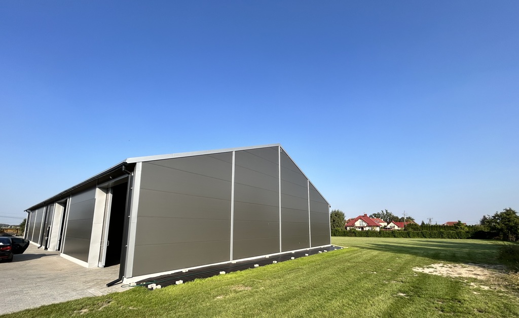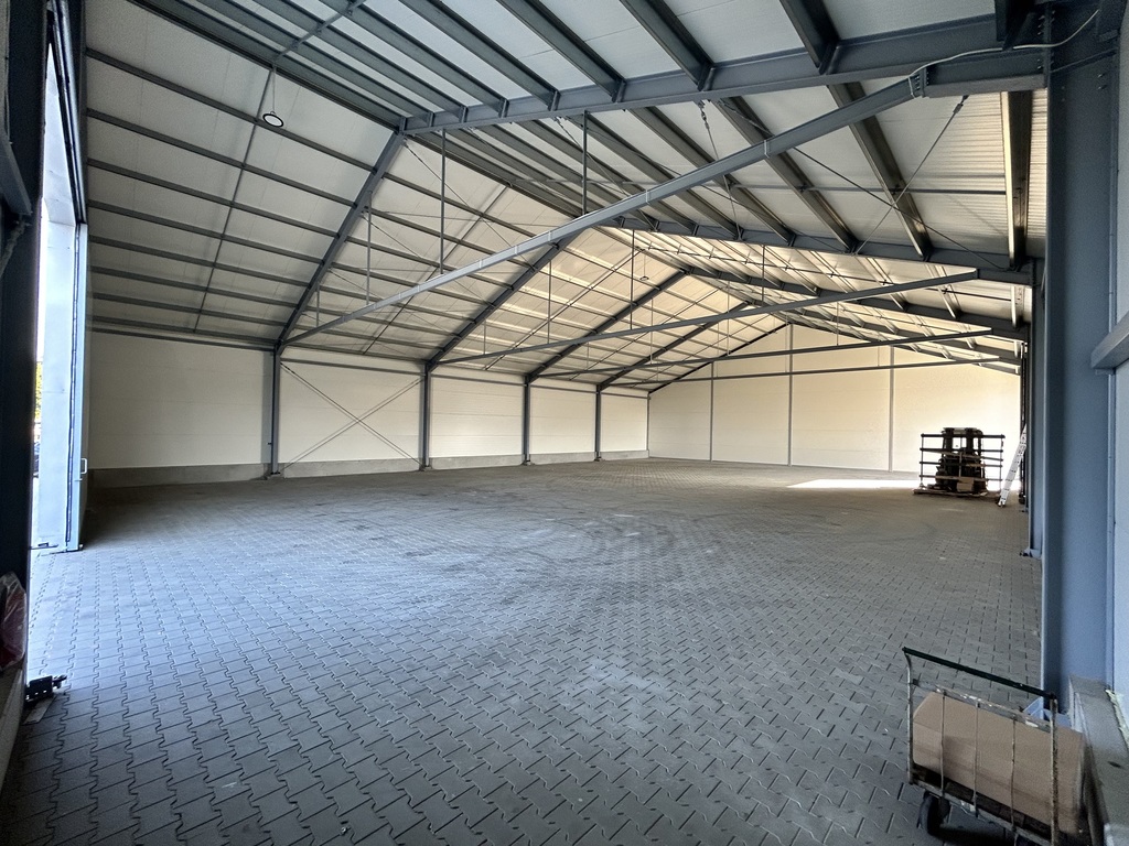 Powierzchnia : 570 m2 (29m x 20m x h 4,7 m) z dwoma wejściami i dwoma bramami wjazdowymi.