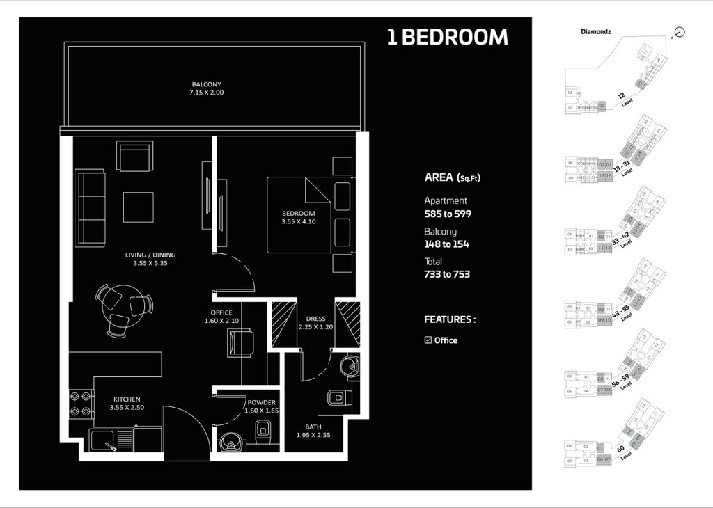 Diamondz oferuje wyjątkowe połączenie przystępnego luksusu i nowoczesnego stylu życia. Tworzony z myślą o osobach, które cenią sobie komfort i ekskluzywną elegancję. Nowoczesna architektura oraz wyrafinowane wnętrza nadają każdemu apartamentowi harmonijny, nietuzinkowy charakter. Wysokiej klasy wykończenia i starannie zaplanowane detale wnętrz podkreślają luksusowy styl oraz zapewniają wygodę.