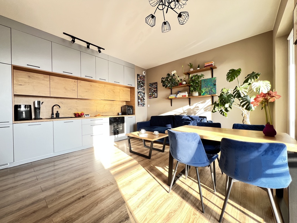 w zabudowę kuchenną wraz z markowym sprzętem AGD, w tym m.in. piekarnik, płyta indukcyjna, lodówka w zabudowie, zmywarka.
