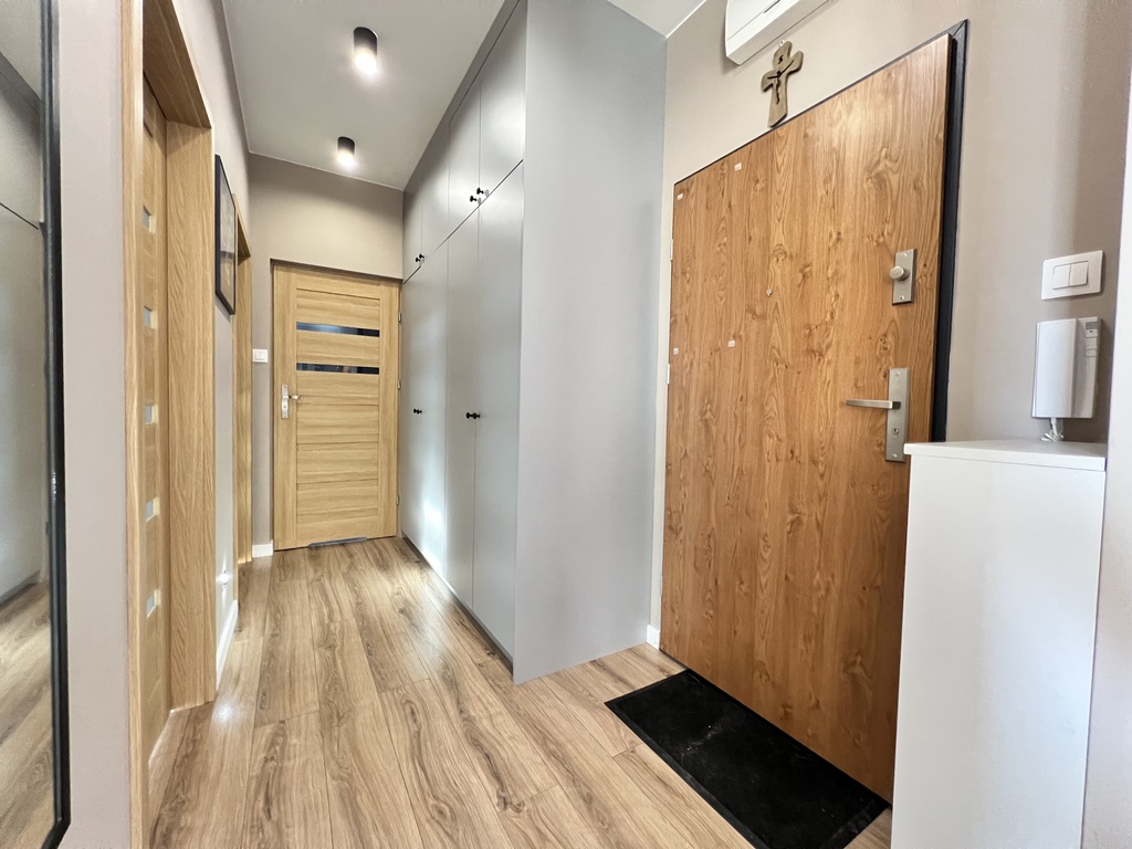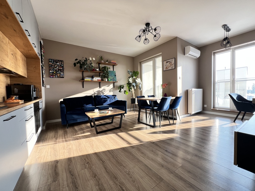 W mieszkaniu zamontowana jest wysoce wydajna klimatyzacja.