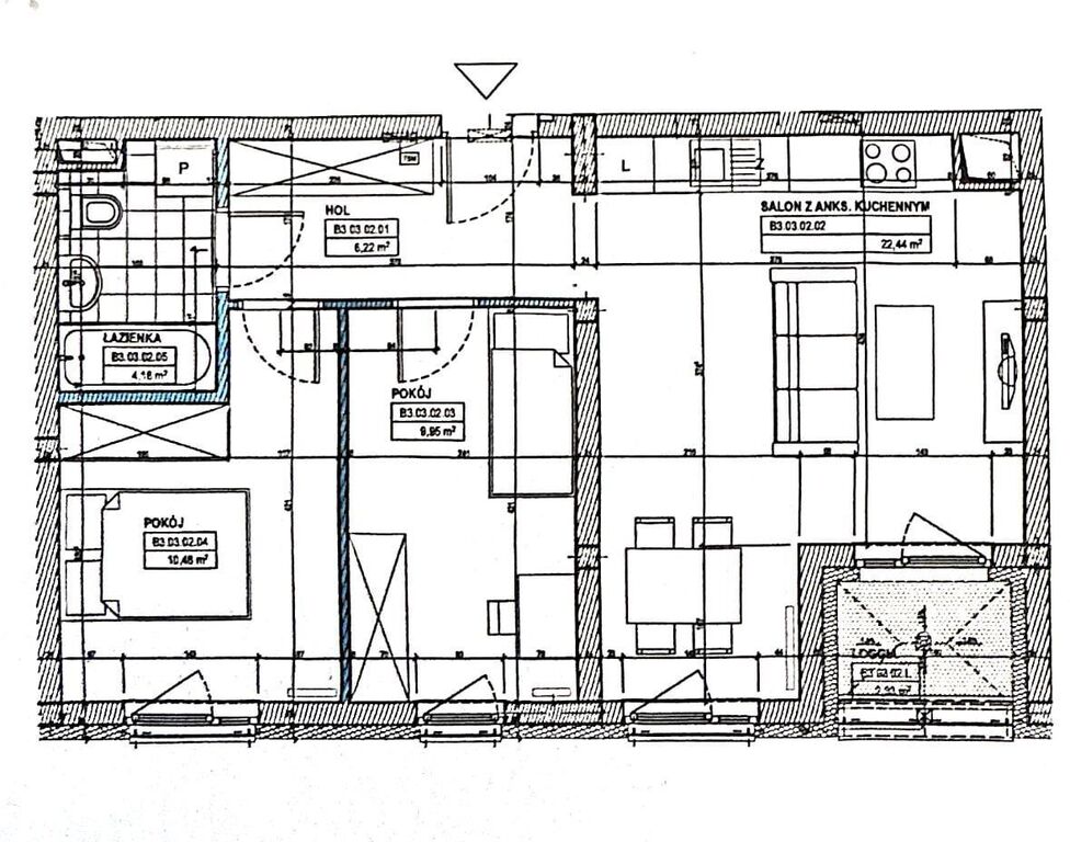 -salon z aneksem kuchennym z wyjściem na balkon (loggia),