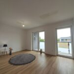 - przestronnego salonu z otwartą kuchnią i wyjściem na balkon