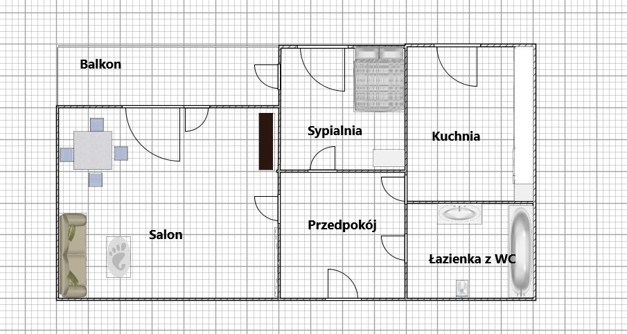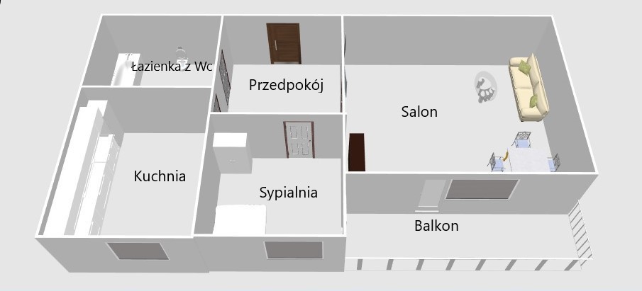 Z dużego pokoju i sypialni jest wyjście na balkon.
