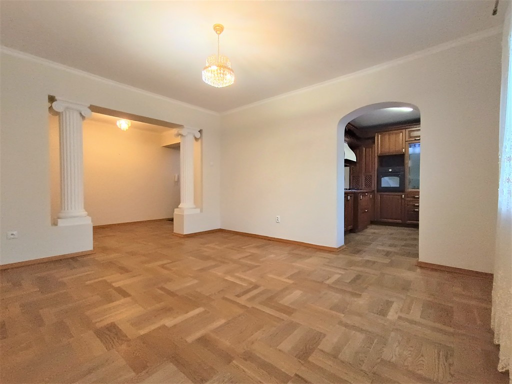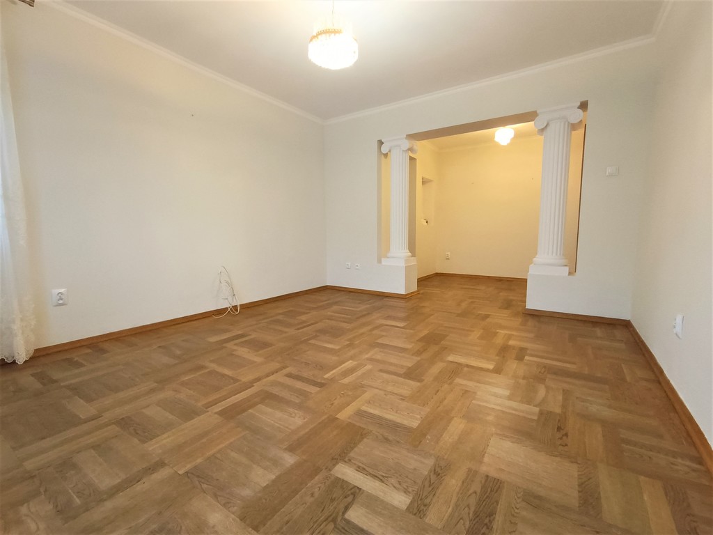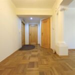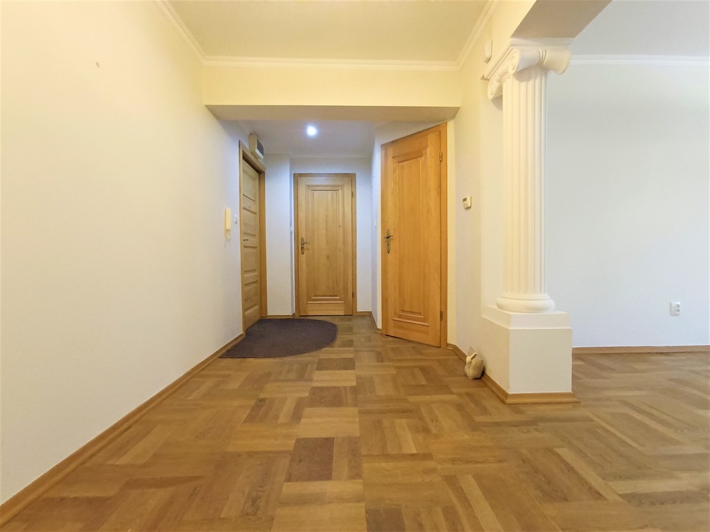 Wszystkie drzwi w mieszkaniu wykonane na zamówienie z litego drewna. Na podłogach parkiet dębowy.
