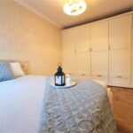 Sypialnia z łóżkiem sypialnianym oraz dużą szafą garderobianą.