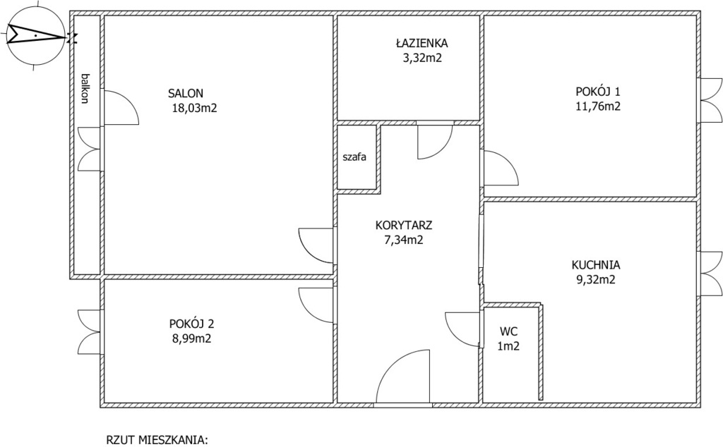 Pokoje: 3 (salon z dużym balkonem, 2 sypialnie)