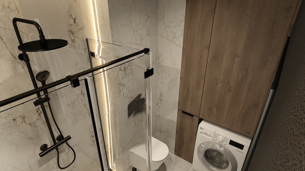 - Łazienki (3,29m2), mimo swoich skromnych rozmiarów, została zaprojektowana w taki sposób, aby była praktyczna i wygodna w użytkowaniu.