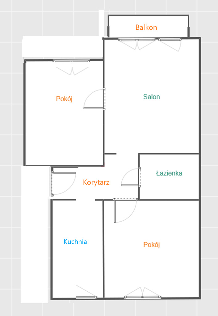 - trzech pokoi, w tym jeden przechodni