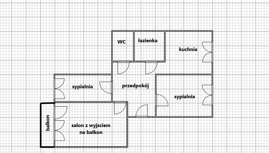 - salonu z wyjściem na balkon