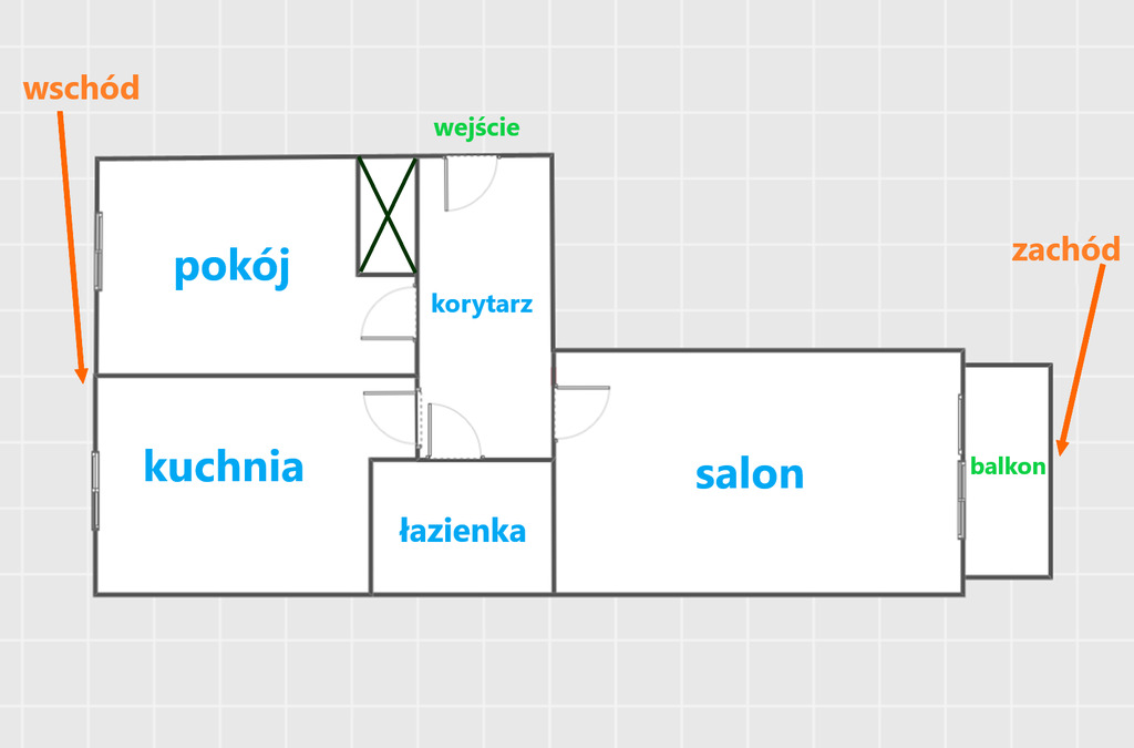 Mieszkanie dwustronne – okna wychodzą na wschód i zachód, dzięki czemu wnętrze jest jasne przez cały dzień.