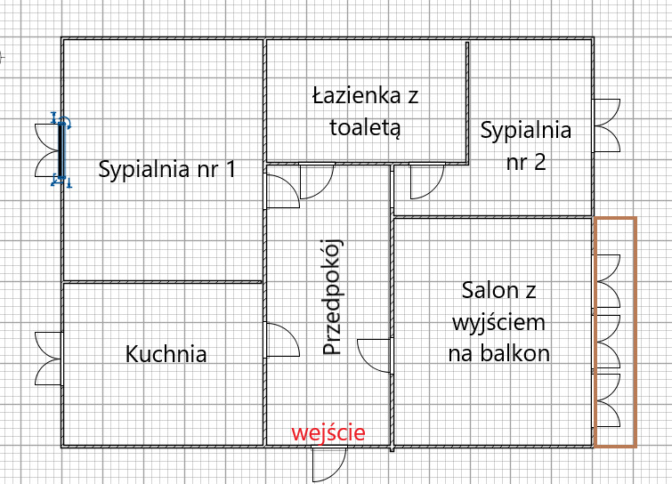 Z dużego pokoju jest wyjście na balkon.