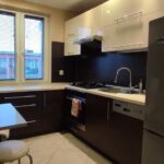 Umeblowana i wyposażona kuchnia: lodówka, kuchenka gazowa z piekarnikiem, okap, zmywarka.