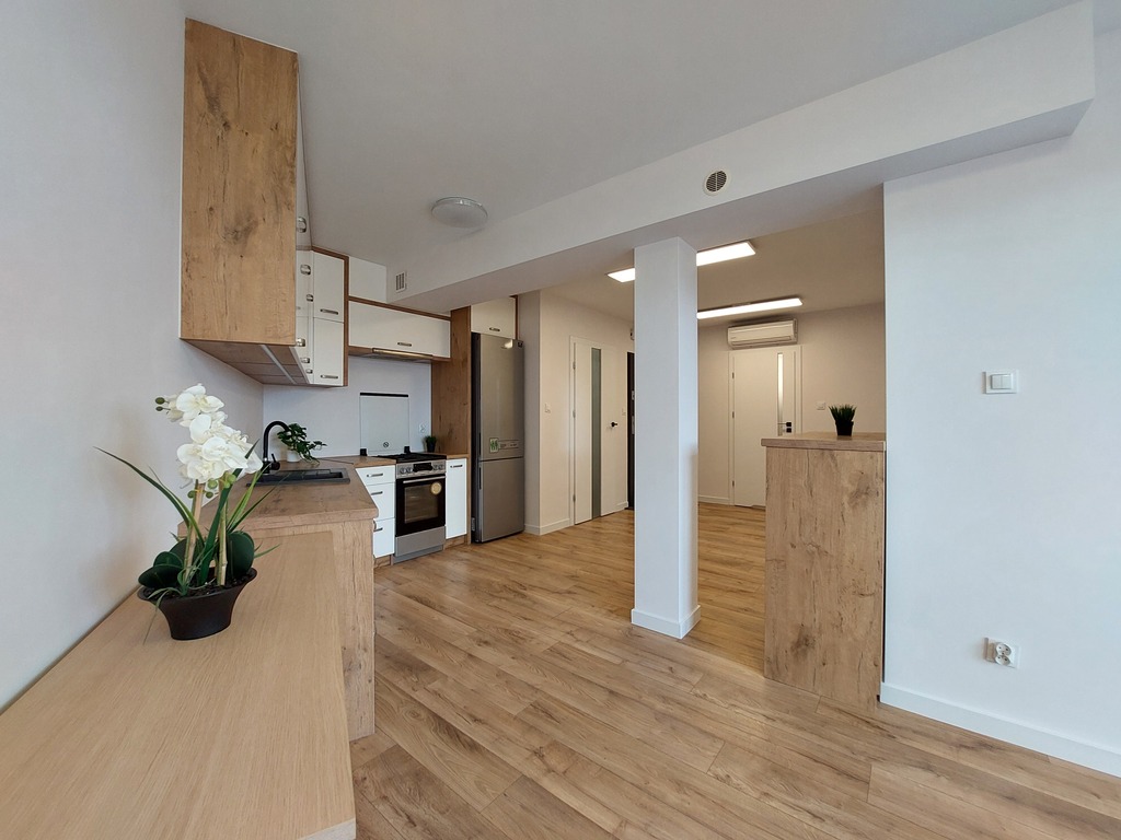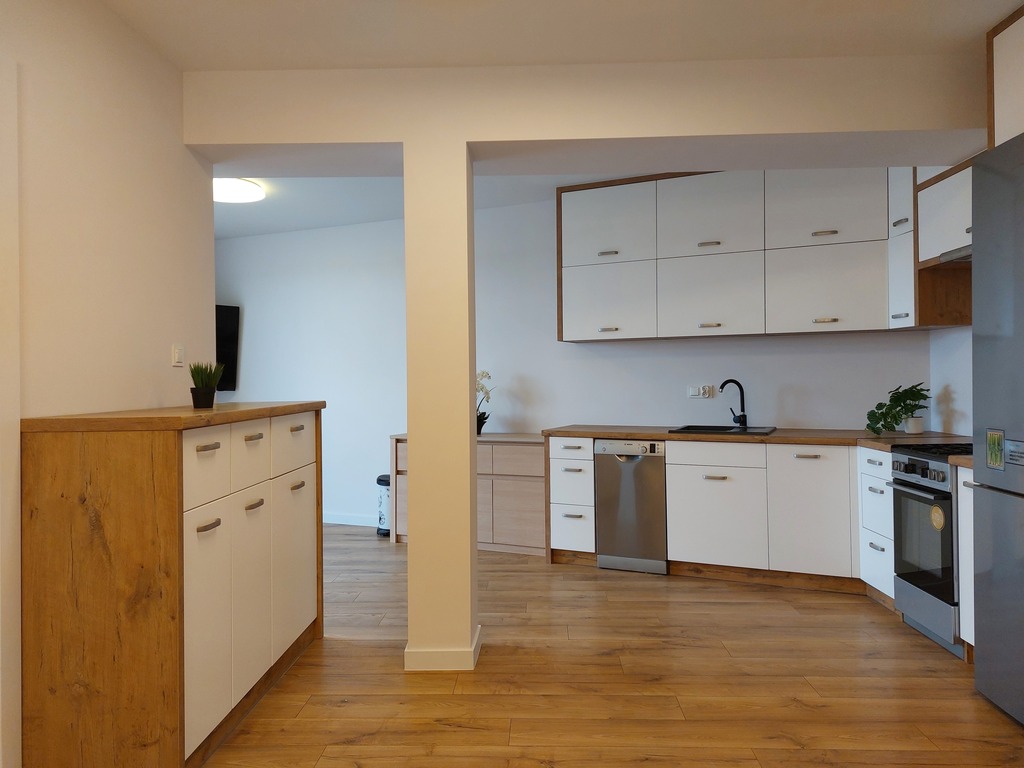 - widna otwarta kuchnia, dwa pokoje, łazienka z WC