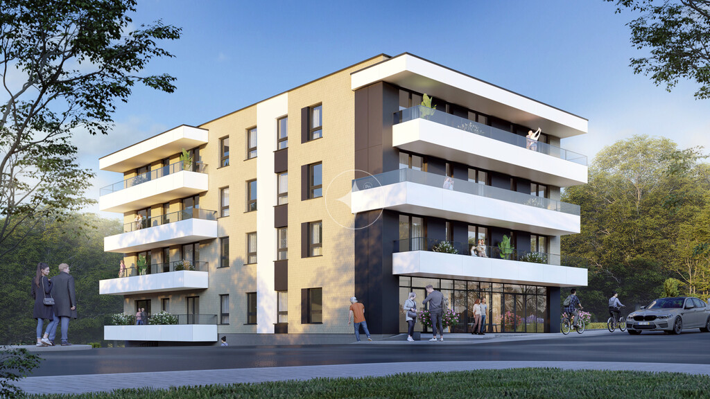 Budynek wyróżnia się współczesnym stylem architektonicznym – minimalistyczna forma i eleganckie wykończenia doskonale wkomponowują się w okolicę, a starannie dobrane materiały zapewniają trwałość i estetykę. Wszystkie mieszkania o powierzchniach od 28,21m2 do 65,91m2 zostały zaprojektowane z dbałością o optymalne wykorzystanie przestrzeni, aby zapewnić maksymalny komfort użytkowania.