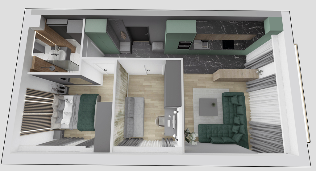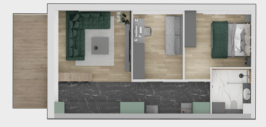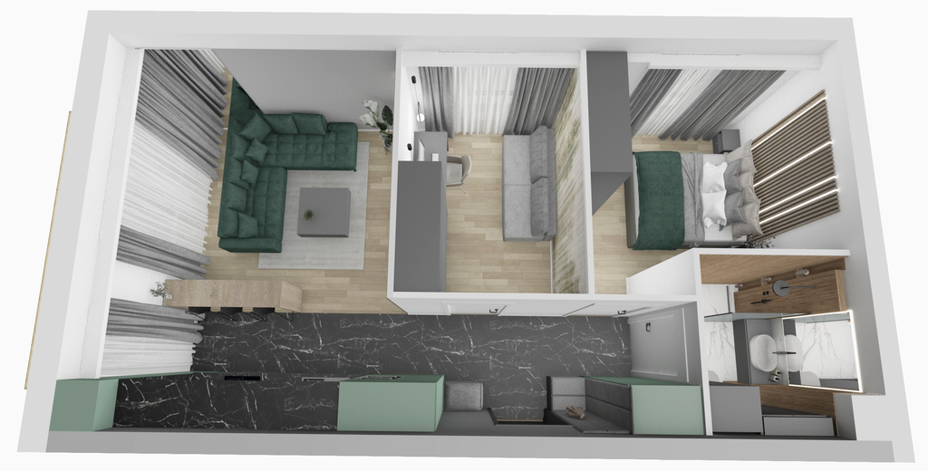 - Pokój z aneksem: 20,77m2